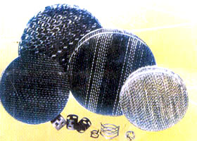 | 填料型號 | 材質(zhì) | 理論塔板no/m | 峰高h mm | 空隙率% | 比表面積m2/m2 | 壓力降mmhg/m | f因子m/s kg/m2 |